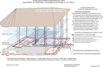 Согласно техническому заключению проведенной в суде экспертизы, в подвале дома расположены трубопроводы и стояки отопления, канализации домовых сетей, водопровода на весь дом, воздуховоды и система принудительной вентиляции, водомерный и тепловой узлы, главные водопроводные вентили и вентили систем отопления, электрощит силовой, шит освещения, пульт управления принудительной вентиляции, пульт охранно-пожарной сигнализации, места прочистки канализационного коллектора.